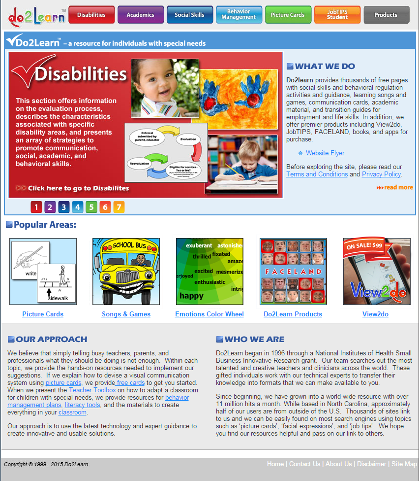 Do2learn provides thousands of free pages with social skills and behavioral regulation activities and guidance, learning songs and games, communication cards, academic material, and transition guides for employment and life skills.